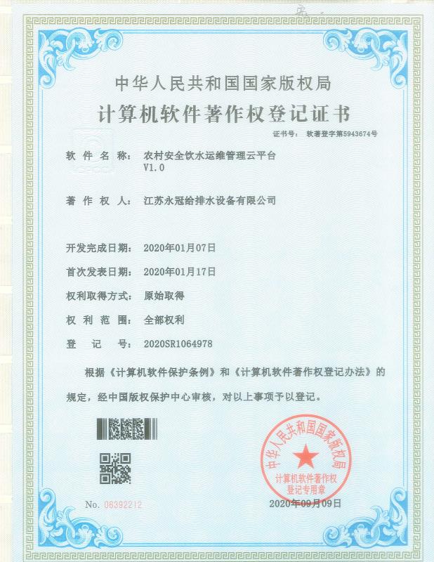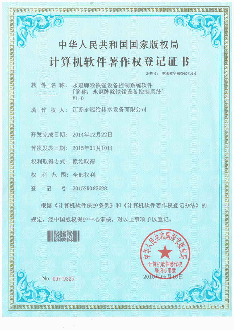 永冠牌除氟设备软件著作权