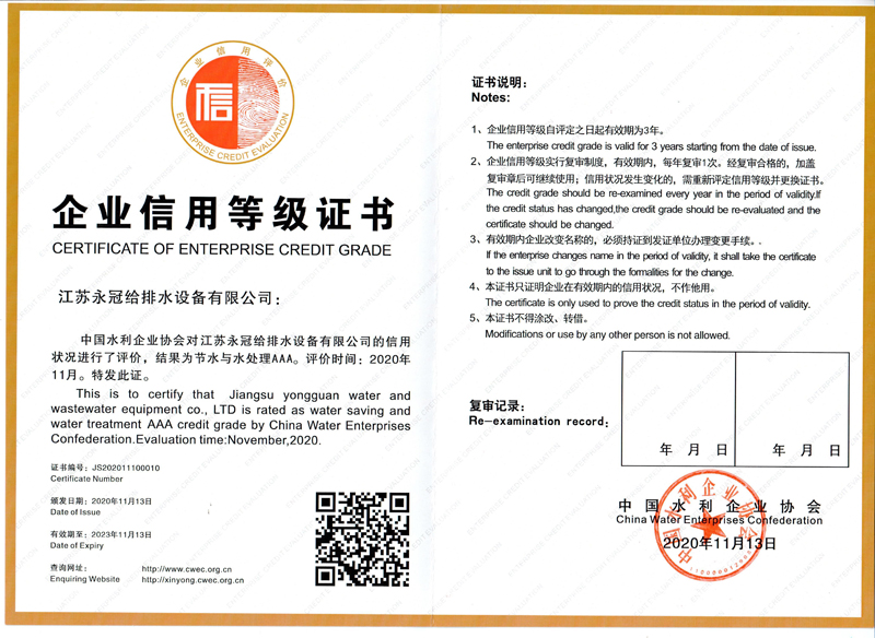 水处理AAA证书2020